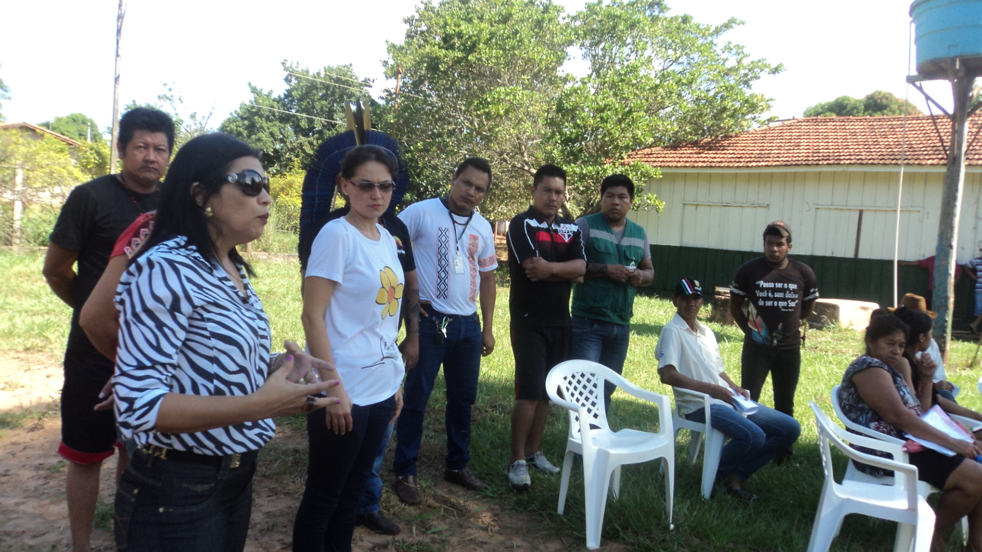 Ana Lúcia Américo, presidente do CEESRAD e superintendente de Direitos Humanos da Sedhast, explicando aos indígenas a importância dos documentos básicos