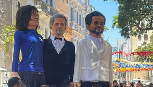 Bonecos gigantes celebram Kleber Mendonça Filho e Wagner Moura em Olinda