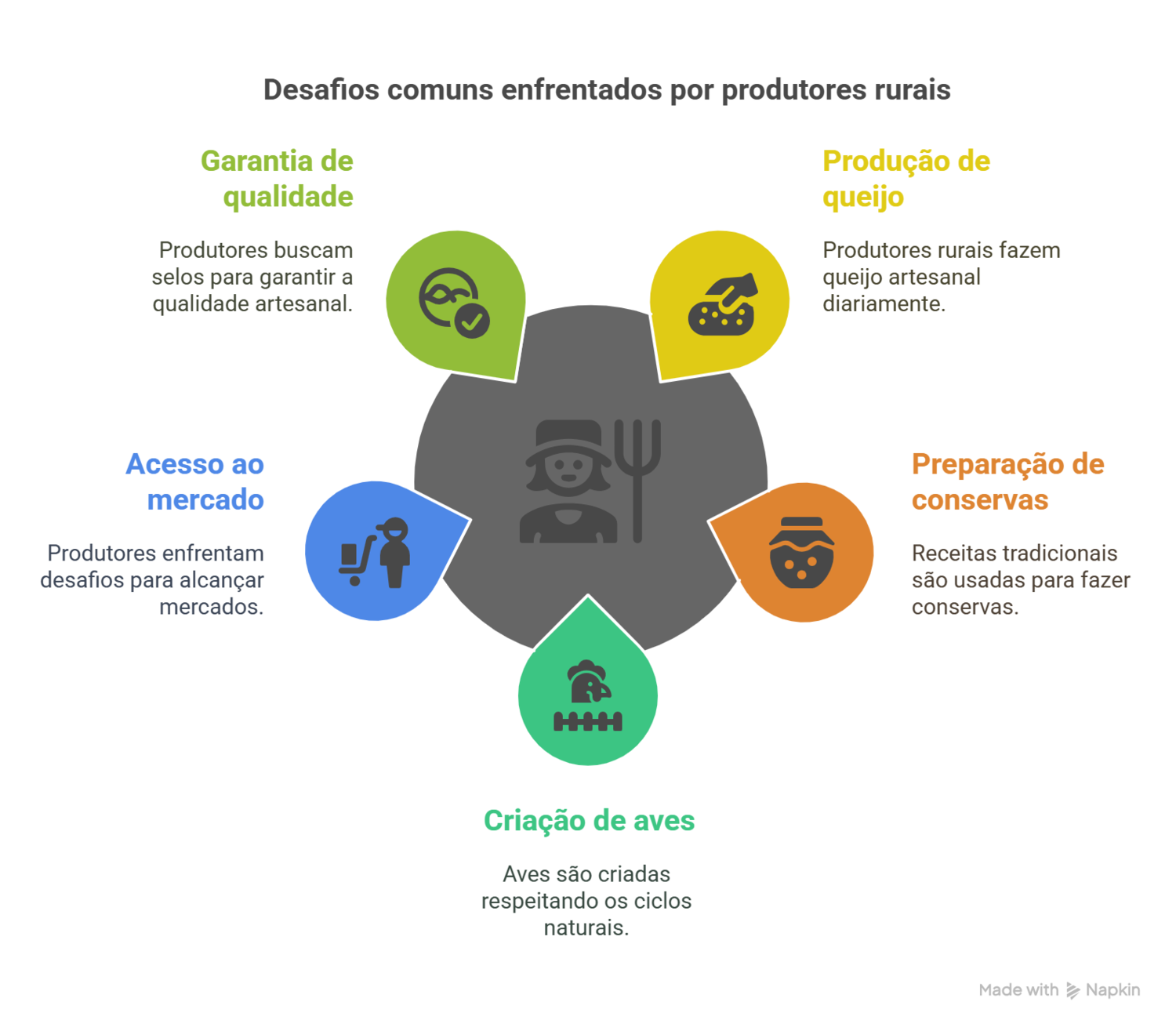 Nas regiões mais remotas do Mato Grosso do Sul, pequenos produtores rurais transformam o trabalho diário em tradição e sabor. É a mulher que molda, com as próprias mãos, até dez queijos por dia. O quilombola que prepara geléias, pimentas e compotas com receitas herdadas de gerações. O criador de frango e ovos caipiras, que respeita o tempo da natureza. Mas todos eles têm algo em comum: o desafio de levar seus produtos até as feiras e mercados, com a dignidade de um selo que garanta a origem artesanal e a qualidade do que produzem.