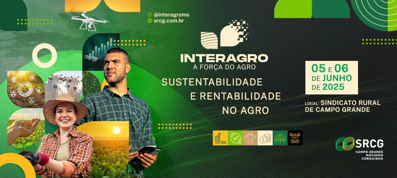 Com foco em inovação, sustentabilidade e competitividade, a quinta edição do Interagro será realizada nos dias 5 e 6 de junho, em Campo Grande, promovida pelo Sindicato Rural de Campo Grande, Rochedo e Corguinho (SRCG). O encontro técnico promete reunir grandes nomes do agronegócio nacional para discutir os caminhos e os desafios da agropecuária brasileira.