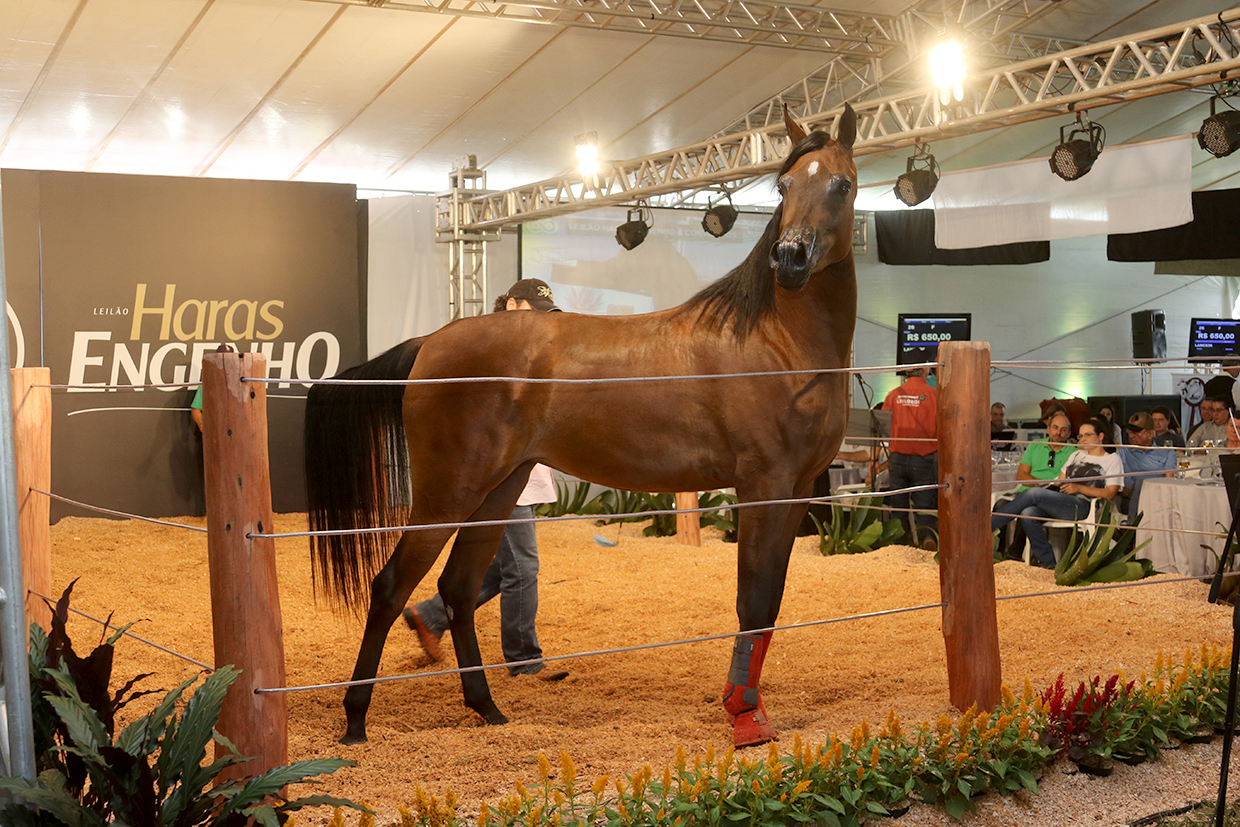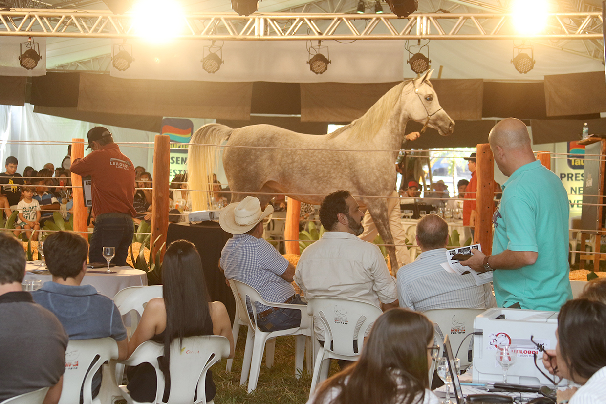 O leilão - No total foram leiloados 28 animais, 14 deles do plantel do Haras Engenho, que há 42 anos investe na criação do cavalo árabe e ofertou embrião e coberturas do garanhão Thee Apprentice.