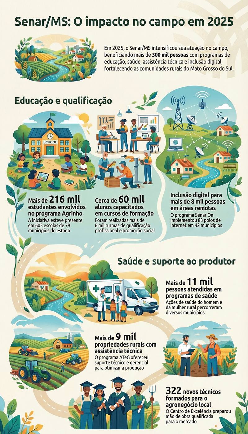 Com ações que vão da educação ao acesso à saúde, o Senar/MS encerrou 2025 ampliando sua presença no campo e atingindo mais de 300 mil pessoas em Mato Grosso do Sul.