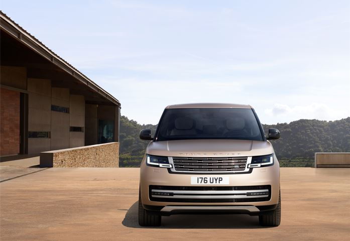O Novo Range Rover é caracterizado por três linhas que podem traçar suas origens através das gerações. A frente é confiante, aprimorada por seu gráfico de grade mais profundo e faróis interseccionais. O design do farol de LED Digital tem uma qualidade semelhante a uma joia, pois a luz reflete e refrata as luzes diurnas. Os faróis de neblina dianteiros, radares dianteiros e sensores de estacionamento estão todos escondidos dentro da abertura inferior, que é descrita por um gráfico horizontal claro no cromo de cetim, para uma aparência limpa e elegante.