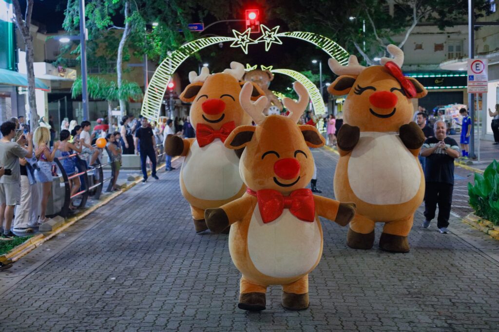 Paralelamente, a Rua 14 de Julho foi palco da tradicional Parada Natalina — um desfile que encheu de brilho, cores e música a região central da cidade. Com personagens temáticos, a presença da “família Rena” e muita alegria, a passeata atraiu centenas de famílias e transformou a avenida em um grande espetáculo a céu aberto.