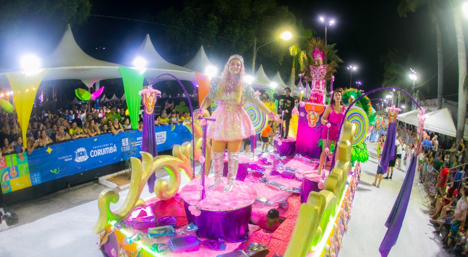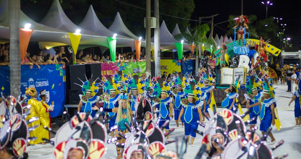 Mocidade fecha a festa na madrugada - Já na madrugada de terça-feira (17), coube à Mocidade Independente da Nova Corumbá encerrar os desfiles. A escola entrou tarde, mas manteve a energia em alta e mostrou um conjunto visual bem acabado, com fantasias detalhadas e alegorias bem finalizadas.