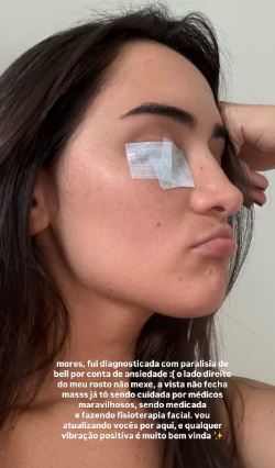 "O lado direito do meu rosto não mexe, a vista não fecha, mas já estou sendo cuidada por médicos maravilhosos, sendo medicada e fazendo fisioterapia facial", escreveu em um storie.