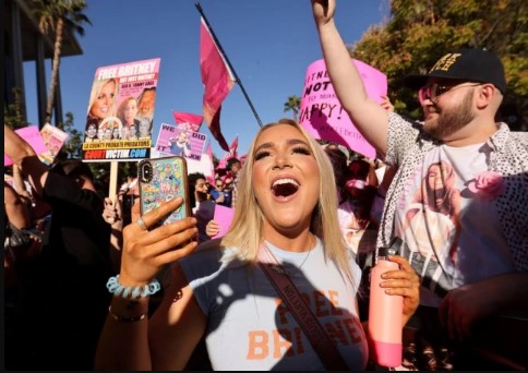 Após a publicação da decisão, centenas de fãs da cantora de 39 anos, reunidos do lado de fora do edifício da Corte Superior de Los Angeles, reagiram lançando confete rosa para o alto e entoando cânticos a favor de Spears, que havia taxado de "abusiva" sua tutela anteriormente.