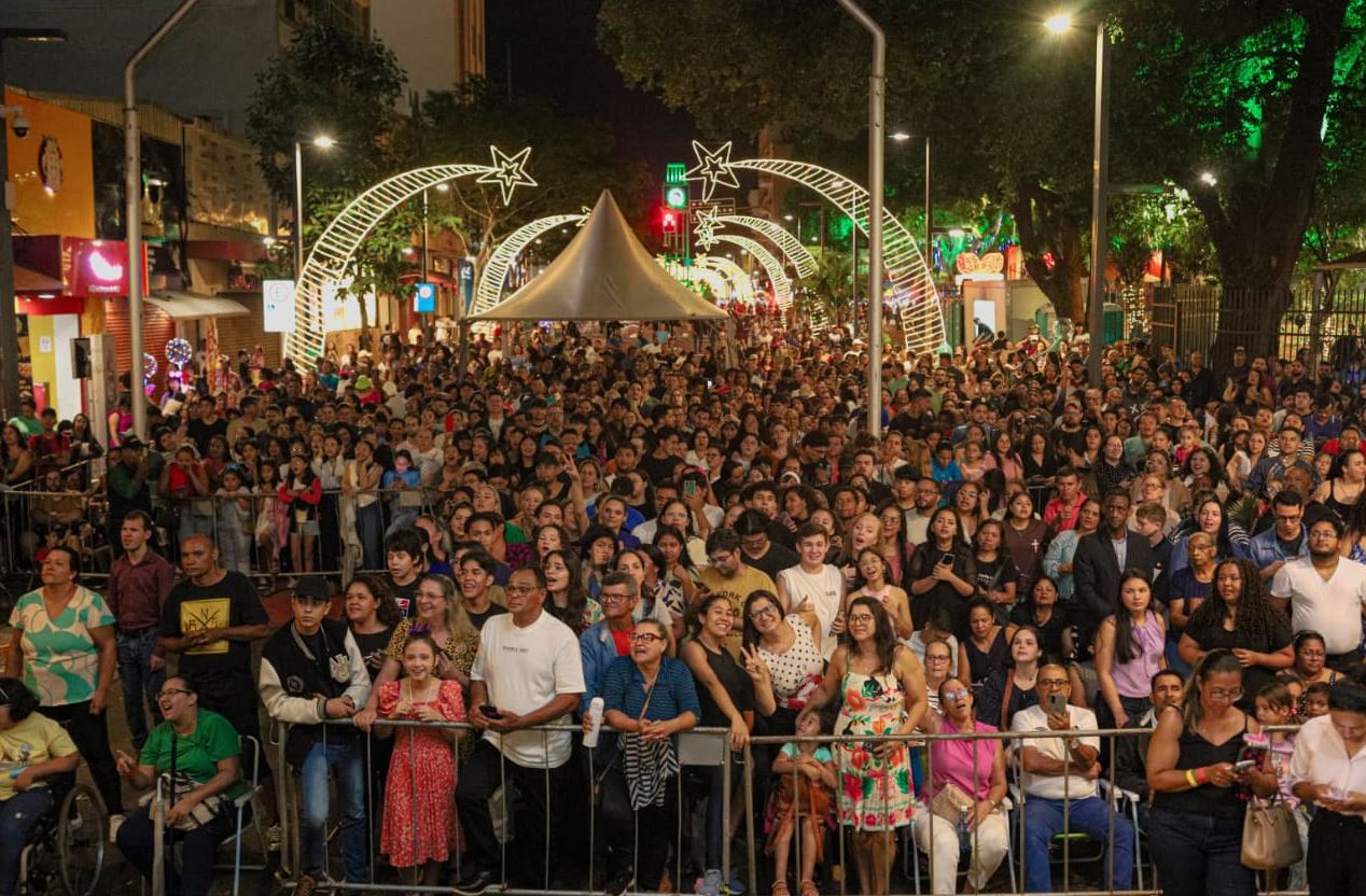 Público lota o centro da Capital durante a programação do Natal dos Sonhos 2025, em noite marcada por fé, música e convivência familiar. Foto: Elias Campos