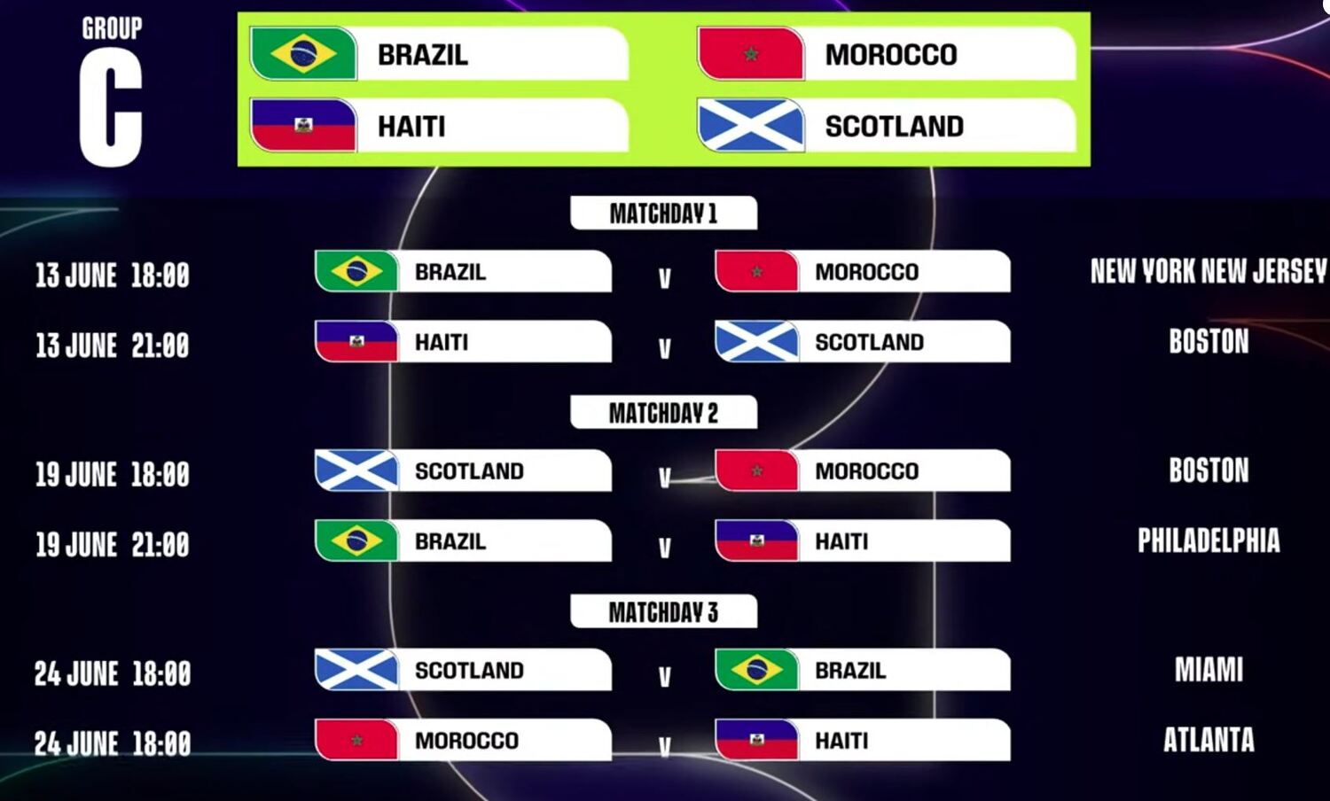 O encerramento da fase de grupos ocorre em 24 de junho, às 19h, contra a Escócia, no Hard Rock Stadium, em Miami.