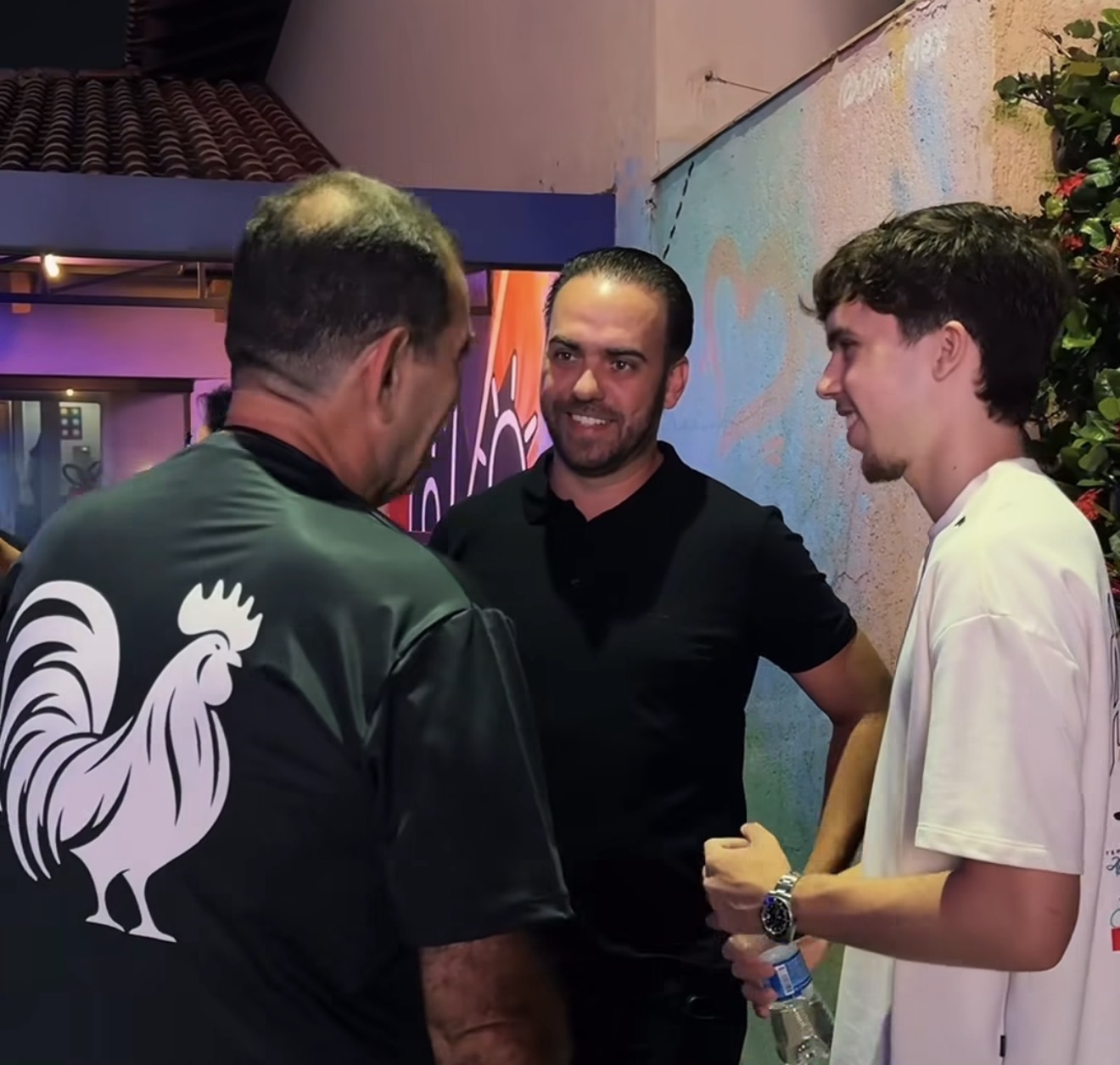 O presidente do Operário SAF, Eduardo Maluf, conversa com convidados durante o “Happy Hour do Galo”, evento que reuniu dirigentes, atletas e torcedores.