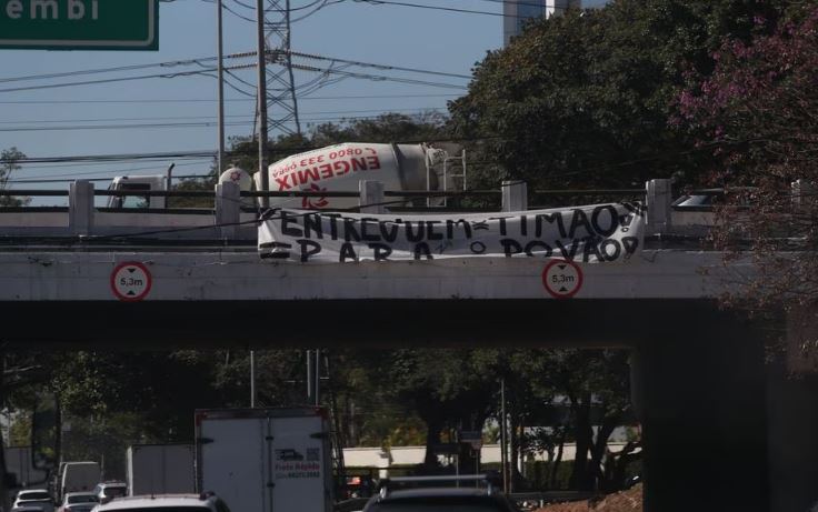 'Entreguem o Timão para o povão', diz faixa pendurada na Ponte do Limão. Foto: Werther Santana/Estadão Conteúdo