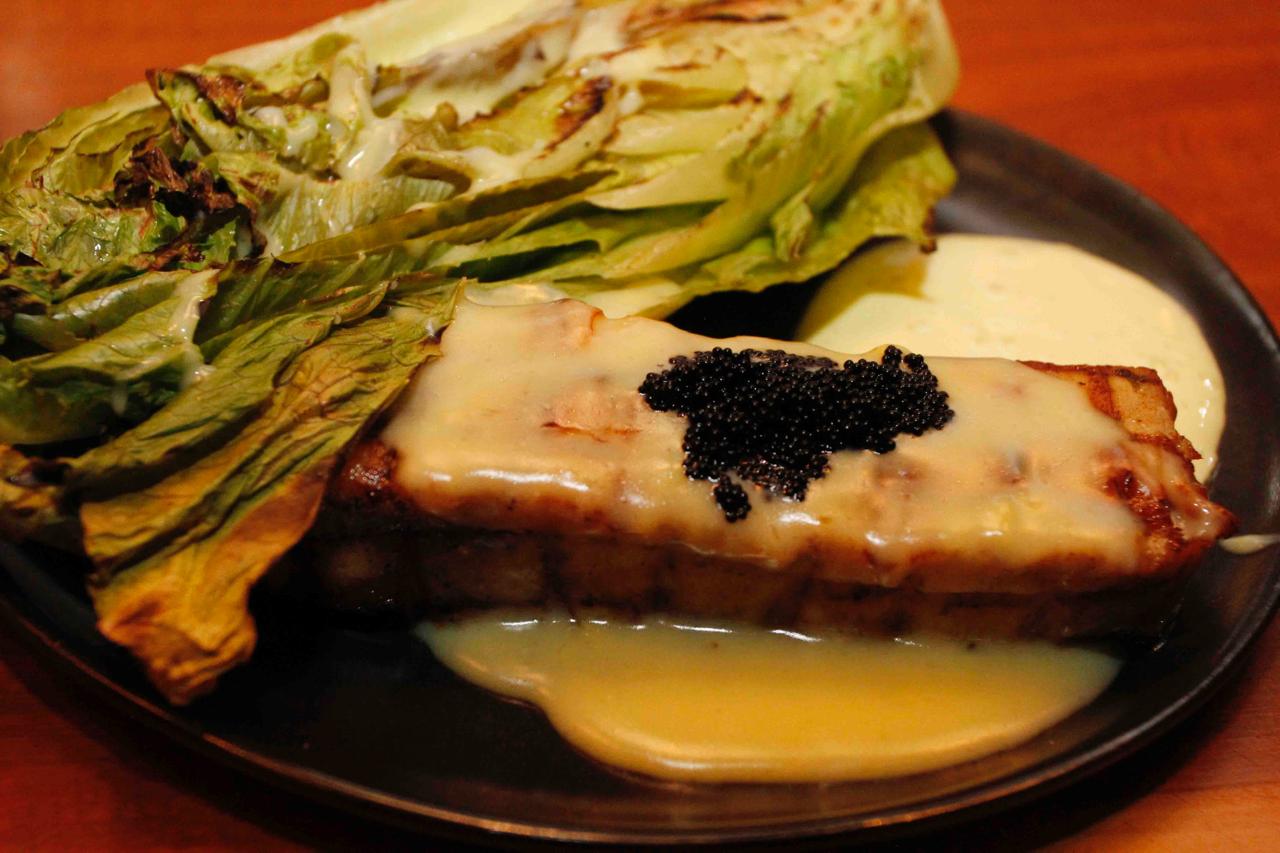 Pirarucu na brasa - Pirarucu marinado por 24 horas, servido com alface americana selada na brasa ao molho holandeses, finalizado com espuma de aspargos (Foto: Divulgação)