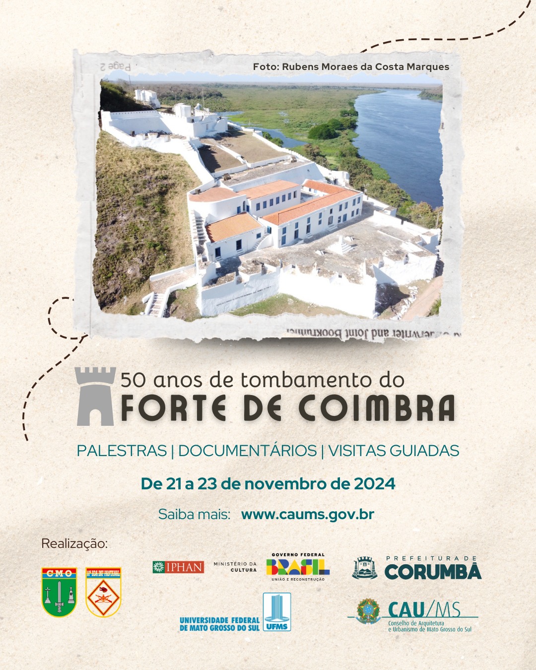 Para marcar os 50 anos do tombamento pelo IPHAN, um evento entre os dias 21 e 23 de novembro, em Corumbá, pretende revisitar o legado do Forte e discutir os desafios de sua preservação. Organizado por instituições como o CAU/MS, o IPHAN/MS e a UFMS, além do Exército Brasileiro, o encontro reúne palestras, visitas guiadas e apresentações culturais, unindo a comunidade local e especialistas.