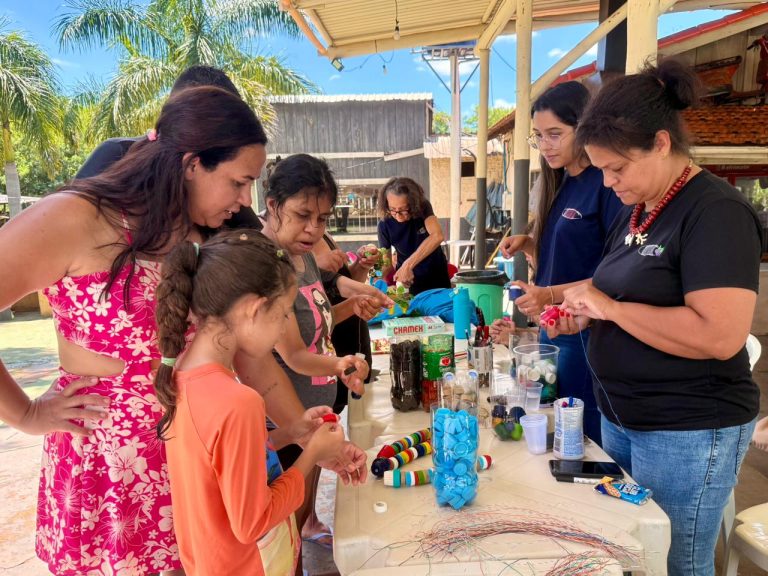 Oficinas com materiais recicláveis como tampinhas e garrafas PET levaram educação ambiental e inclusão a escolas e instituições de Campo Grande ao longo de 2025. (Foto: Lara Miranda)