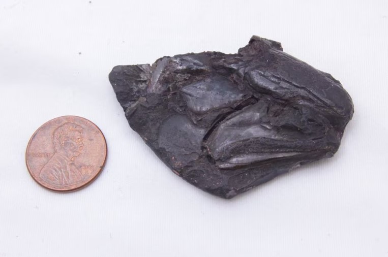 O crânio fossilizado de Coccocephalus wildi, um peixe de barbatanas de arraia que nadou em um estuário há 319 milhões de anos. Este peixe teria de 6 a 8 polegadas de comprimento, mais ou menos do tamanho de um lambari. Foto: Jeremy Marble/University of Michigan News.