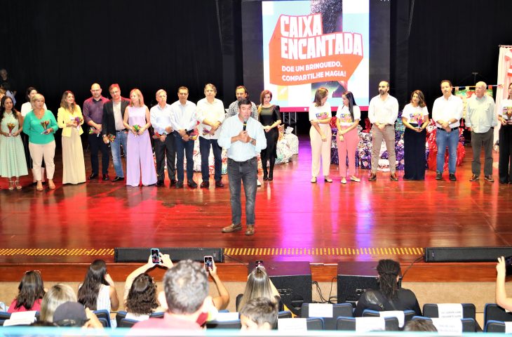 Nesta segunda-feira (11), em cerimônia realizada no Centro de Convenções Rubens Gil de Camillo, em Campo Grande, o governador Eduardo Riedel e sua esposa, Mônica Riedel, madrinha da campanha receberam cerca de 250 crianças de cinco instituições locais, incluindo a Associação Kodomokai de Karatê e o Instituto Jardim de Deus, participaram da festividade.