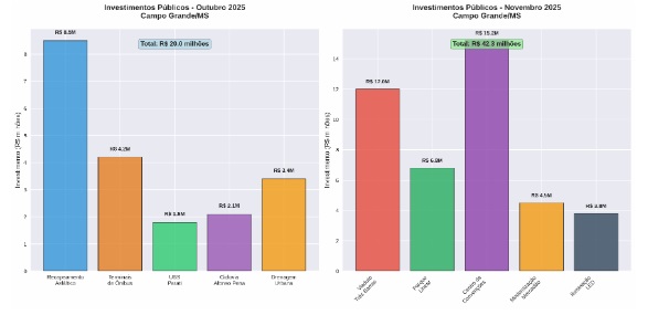 Campo Grande vive um momento de impulso em sua infraestrutura urbana e no ambiente de negócios. Em novembro de 2025, o município aplicou R$42,3 milhões em projetos estruturantes — o maior volume investido num só mês no ano — e acumulou indicadores positivos em geração de emprego, abertura de empresas e competitividade urbana, de acordo com dados da Prefeitura.