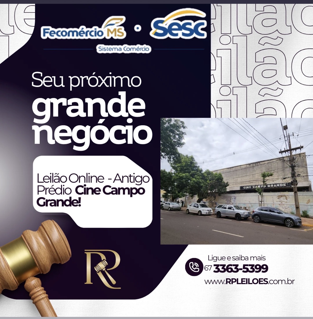 O antigo prédio do Cine Campo Grande, localizado na Rua 15 de Novembro, nº 750, no centro da Capital sul-mato-grossense, está oficialmente à venda. O imóvel, pertencente ao Serviço Social do Comércio em Mato Grosso do Sul, o Sesc/MS, foi colocado em leilão online com lance mínimo de R$ 4.944.755,22. O certame começou no dia 4 de fevereiro de 2026, às 10h, e segue aberto até 24 de fevereiro, com encerramento previsto a partir das 15h03 no horário de Brasília.