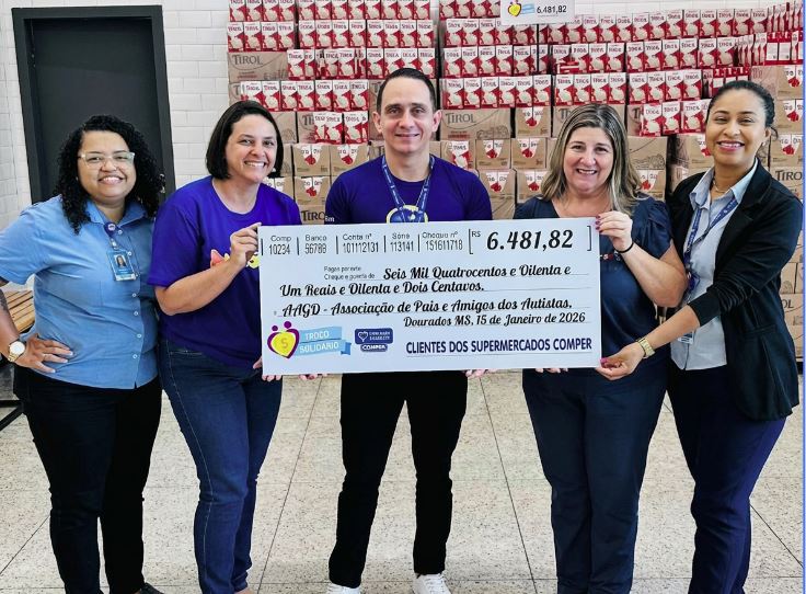 Em janeiro, três entidades receberam juntas R$ 149.846,68 por meio do projeto Troco Solidário, realizado pelos supermercados Comper e Fort Atacadista. O valor foi arrecadado entre outubro e dezembro de 2025, com doações de clientes no momento da compra.