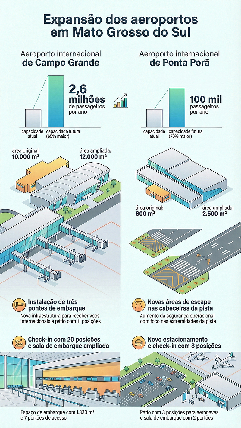 Segundo a Aena, administradora do aeroporto, a expansão dos aeroportos de MS representa um marco importante para a mobilidade regional e nacional, promovendo integração, turismo e desenvolvimento econômico para o Estado e para toda a região Centro-Oeste do Brasil.