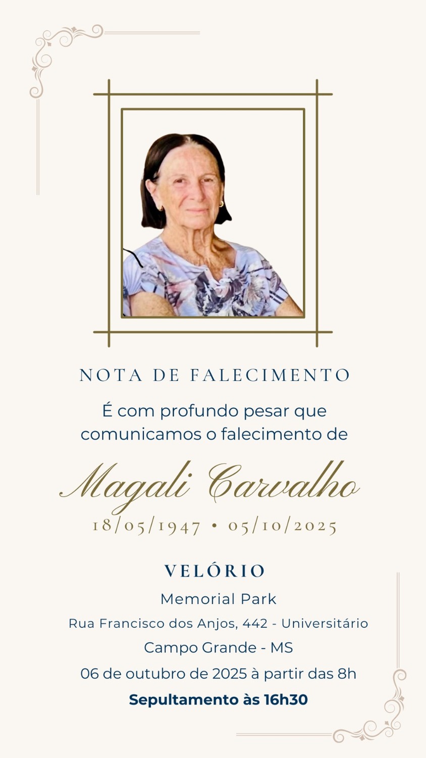 Na nota, a OAB/MS expressou solidariedade aos familiares. “A OAB/MS manifesta seu mais profundo pesar pelo falecimento da Sra. Magali Carvalho [...] e se solidariza com os familiares, amigos e colegas, rogando a Deus que conforte o coração de todos.”