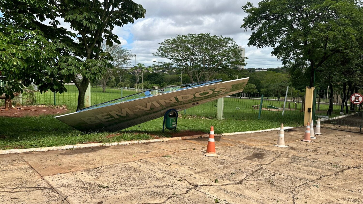 A chuva começou de forma repentina e surpreendeu quem trabalhava no local. A comerciante Lauane Bibiano conta que o vento tomou conta da avenida em poucos segundos, levantando estruturas e causando pânico entre clientes e funcionários. “Foi do nada. A gente tinha acabado de atender os clientes quando começou a garoar. De repente, o tempo fechou e o vento atravessou a pista, levantando mesa, cadeira e até quebrando o brinquedo do parquinho. Tinha criança na cama elástica, e os pais precisaram segurar pra não serem levadas.”