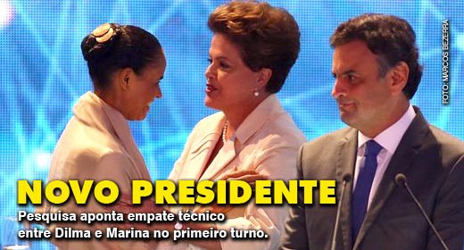 De acordo com a sondagem, no primeiro turno a presidente Dilma registra 29,8% da preferência do eleitorado, enquanto Marina é detentora de 29,5% das intenções de voto. O candidato do PSDB ao Planalto, Aécio Neves, ocupa a terceira colocação, com 15,2%.