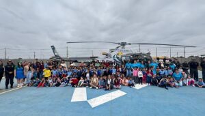 Atividade reuniu cerca de 250 alunos de dois CEIMs e teve apresentações, visita ao helicóptero Harpia e distribuição de brinquedos