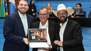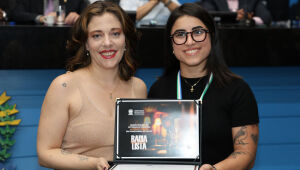 O diretor da Plaenge Urbanismo, Edison Holzmann e a prefeita Adriane Lopes inauguram o viaduto