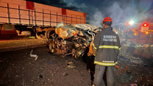 Batida entre Fiat Strada e carreta ocorreu à noite, a 21 km da área urbana; vítimas morreram no local e rodovia foi parcialmente interditada