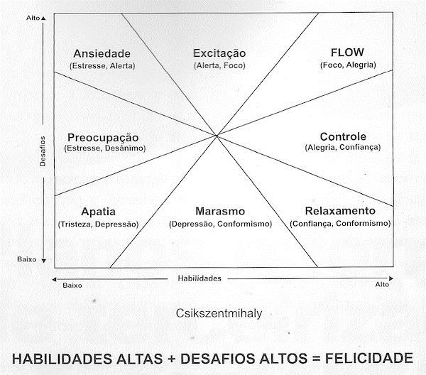 Pensando em produzir Flow em nossas vidas, que tipos de metas e sonhos seriam adequados escolher em 2015? Aqueles que nos desafiam! Mas os desafios devem estar dentro de nossas habilidades e capacidades. Csikszentmihalyi propõe uma fórmula que seria: Habilidades altas + Desafios Altos = Felicidade.