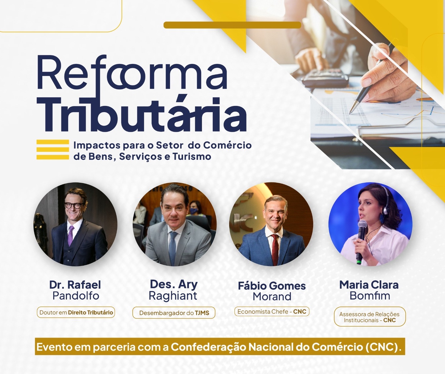 Entre os convidados estão o doutor em Direito Tributário Rafael Pandolfo, o desembargador Ary Raghiant (TJMS) e os representantes da Confederação Nacional do Comércio Fabio Bentes (economista-chefe) e Maria Clara Vilasboas (cientista política). Eles trarão diferentes análises sobre os impactos fiscais, jurídicos e políticos da reforma.