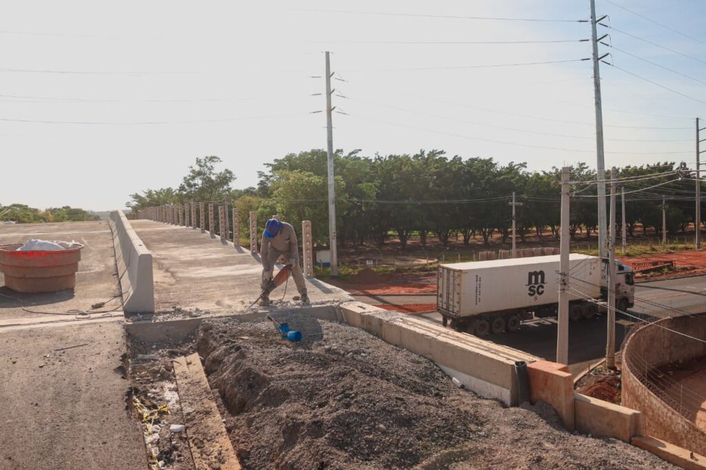 A nova estrutura contará com duas pistas de tráfego, acostamento, ciclovia e faixa de pedestres, além de quatro alças de acesso, retornos sob o viaduto e duas rotatórias para organizar o fluxo. O traçado foi planejado para permitir a futura duplicação do anel viário, acompanhando o avanço urbano.