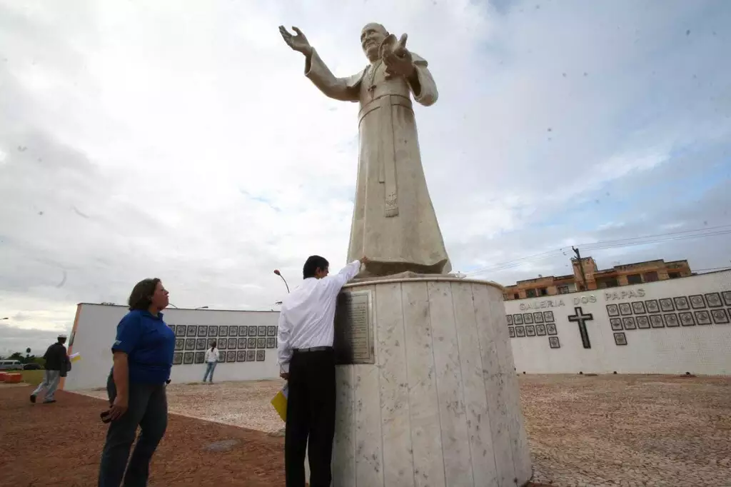 O local é considerado ponto de peregrinação e contemplação na capital sul-mato-grossense, com destaque para uma escultura de quatro metros do ex-papa, projetada pela arquiteta Zuleide Higa. A imagem mostra João Paulo II com uma mão abençoando a cidade e outra segurando uma pomba branca. A praça também possui elementos simbólicos no piso, como um cálice e uma hóstia desenhados com pedras, além de uma galeria com retratos de papas — ainda sem a imagem de Francisco.