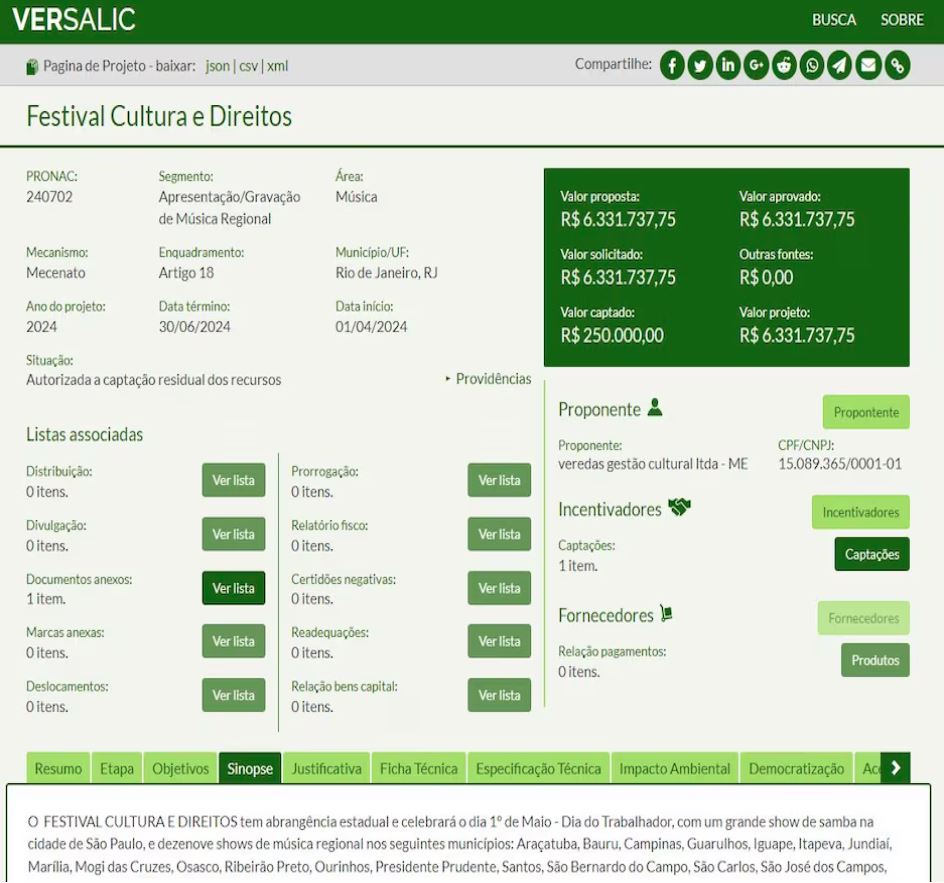 Ao cadastrar o projeto na Lei Rouanet, a produtora foi autorizada a levantar até R$ 6,3 milhões. Mas só um "incentivador" topou financiar o 1º de Maio - uma faculdade privada de medicina sediada em Campinas (SP), a São Leopoldo Mandic.