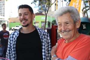 Jonatas Menon (e) levou o pai, Pessoa do Nascimento (d)E devido a essa facilidade no acesso que o administrador, Jonatas Menon do Nascimento, 32 anos, levou o seu avô, Pessoa do Nascimento, 89 anos, para tomar a vacina contra a Influenza. Ele contou que iria ao centro da cidade com o avô e aproveitou para ir até o quartel central. “Hoje cedo assisti na TV que teria a vacinação e como já viríamos resolver outras coisas no centro da cidade, trouxe o meu avô para se vacinar. Quando chegamos fiquei sabendo que eu também poderia me vacinar, já aproveitei a oportunidade e tomei a minha”, comentou Jonatas.