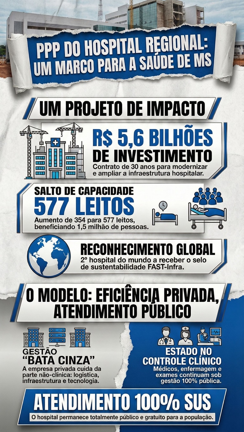 Nesta quinta-feira (04) às 13h no horário de Mato Grosso do Sul, acontece o leilão da Parceria Público-Privada do Hospital Regional de Mato Grosso do Sul. O evento será realizado na sede da B3, no Centro de São Paulo, e contará com a presença do governador Eduardo Riedel.