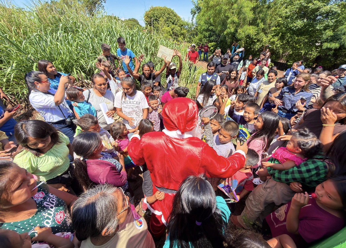 O momento mais esperado pelas crianças marcou esta edição: a chegada do Papai Noel de helicóptero, da Coordenadoria Geral de Policiamento Aéreo (CGPA) da Sejusp. Assim que o helicóptero pousou, dezenas de crianças correram para abraçar o bom velhinho. A alegria aumentou com a entrega de mais de 300 brinquedos arrecadados por servidores da Sejusp durante a Campanha Caixa Encantada.
