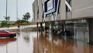Trecho da Avenida Rachid Neder é interditado após chuva abrir o asfalto em Campo Grande.