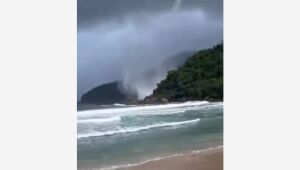 Tromba d'água assusta banhistas em praia de Paraty neste domingo